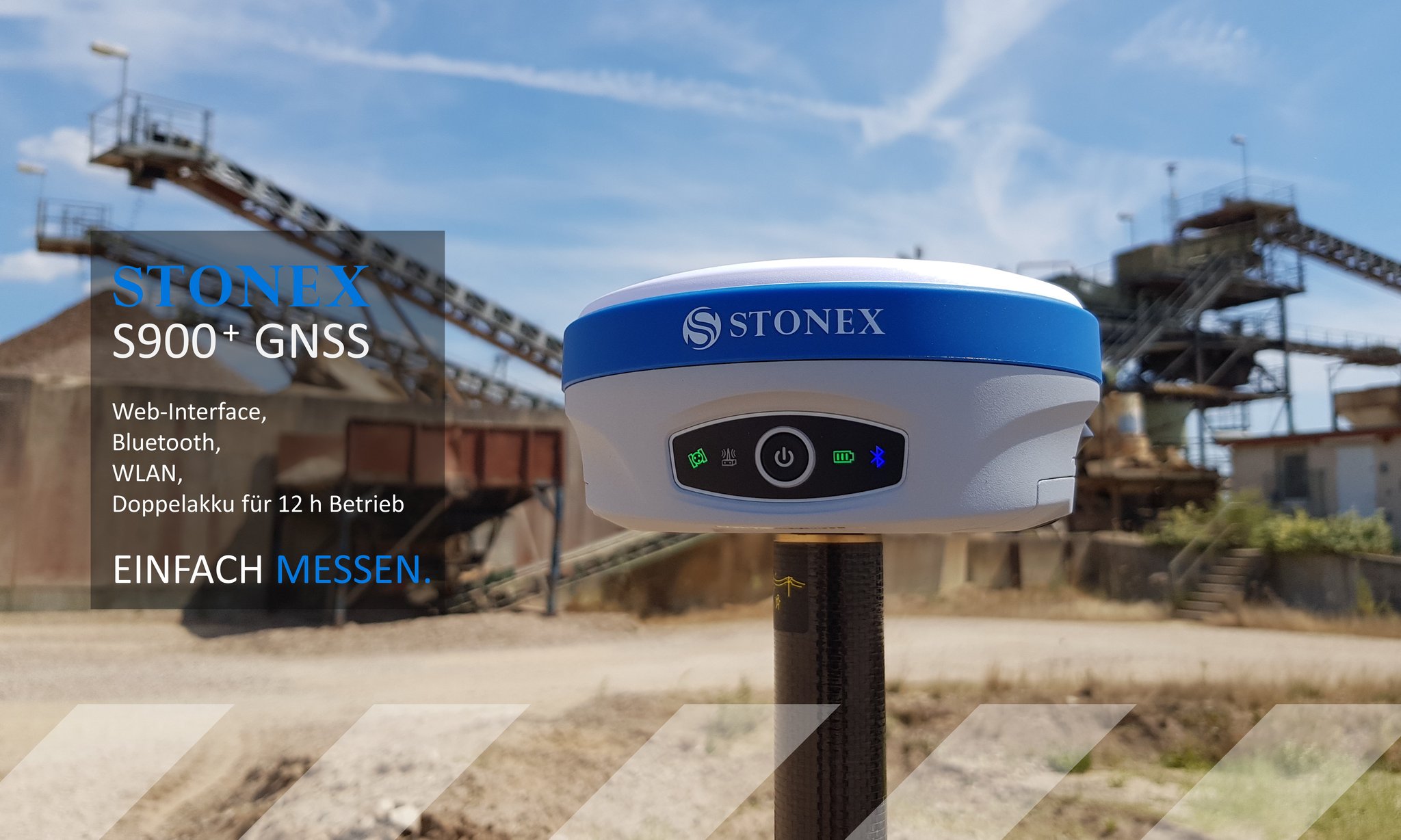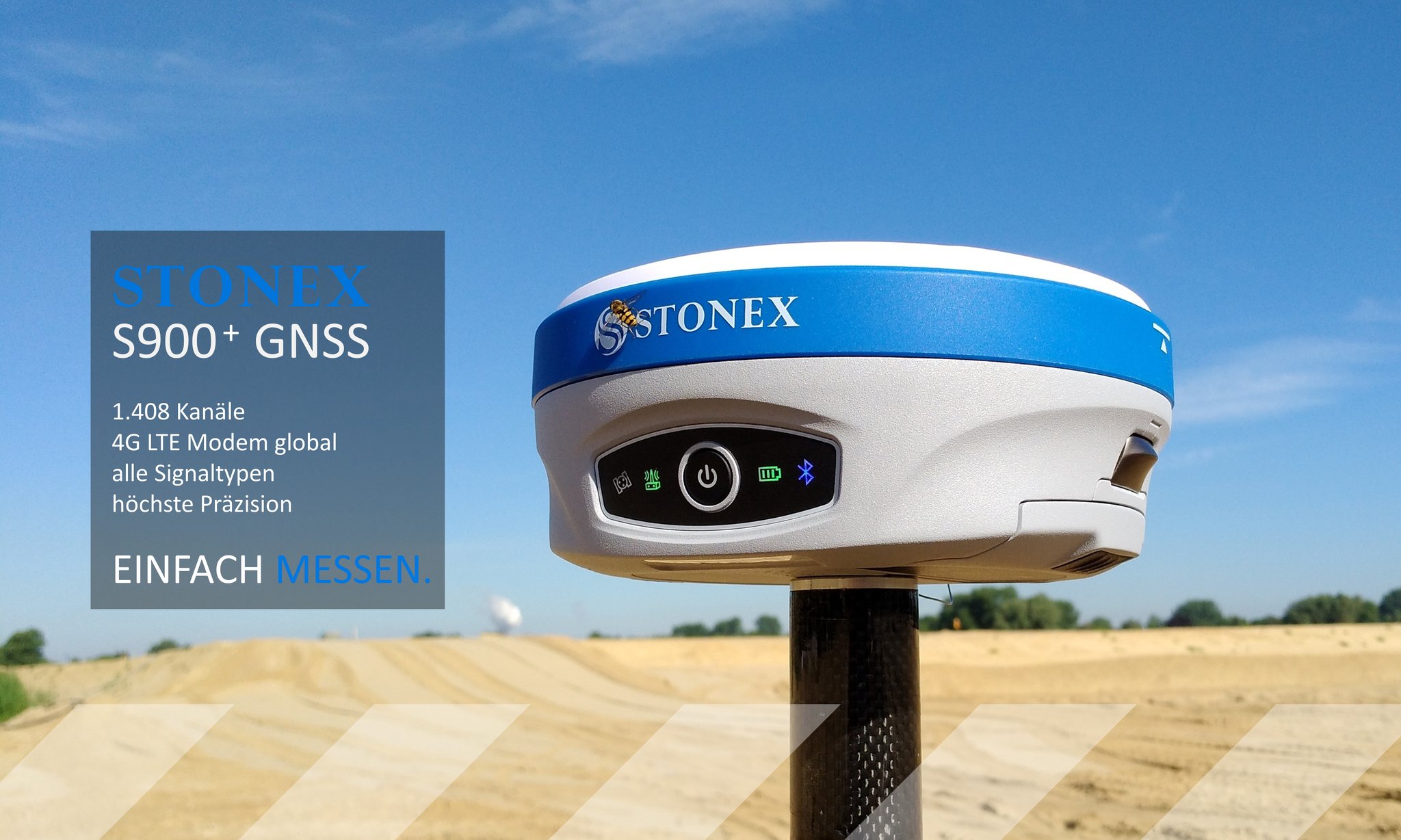 STONEX S900+ mit IMU, Empfang der vollen Satellitenkonstellation, bis 20 Hz Positionierung, 4G LTE-Modem, Web-Interface, elektronischer Libelle undUHF (optional